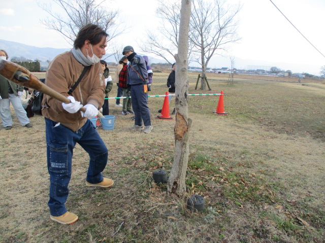2月1日(日)石の斧を使って木をきるイベントが開催されました。